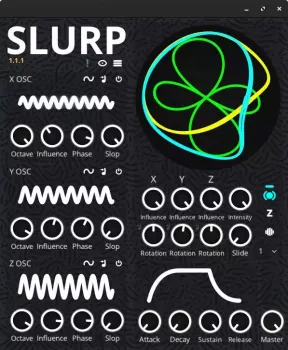 SLURP is a digital synthesizer that convert traditional oscillations into rotations. Control these rotational dynamics with 3 oscillating sources of your choice.