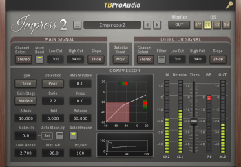 Impress 是一种宽带立体声压缩器,包括侧链、各种前置滤波器选项和最先进的过采样。